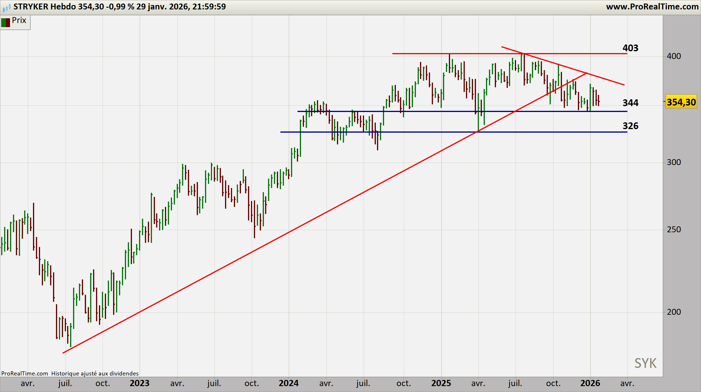La question n’est donc pas de savoir si Stryker reste un leader structurel — c’est acquis — mais à quel niveau le marché offre un point d’entrée rationnel. Les supports actuels commencent à redevenir attractifs, dans un secteur où la visibilité et la récurrence des revenus sont des atouts rares.